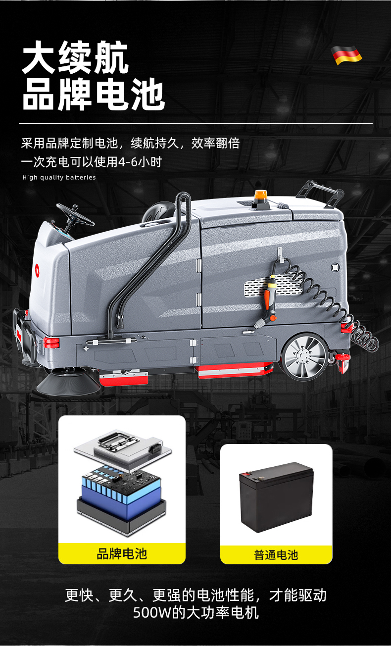 品牌:WACHTEL 名稱:超大型駕駛式洗掃一體機SX1450 型號: SX1450 清掃寬度:1450mm 清潔效率:12800m²/h 工作時間:3~6h 水箱容量:280L/330L(清/污) 電池:意大利OM鋰電 電機::德國瓦赫電機 整機重量:1200kg 產品尺寸:2800*1450*1590mm 適用清潔場所: 商場 超市 車庫 車間 辦公樓等