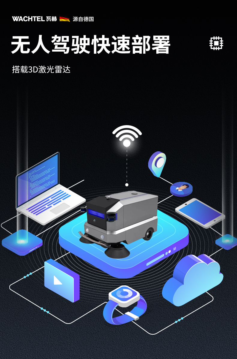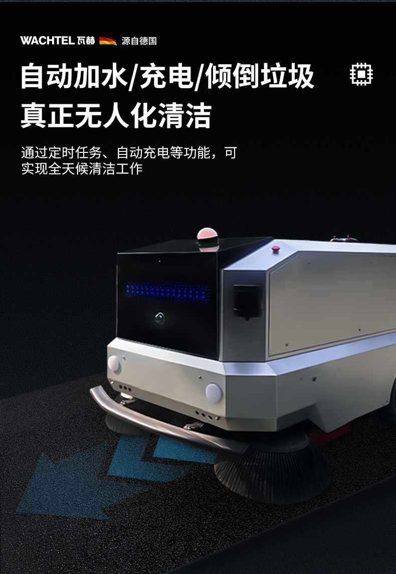 品牌:WACHTEL 名稱:智能清掃機(jī)器人 型號(hào):SW1400 功能:掃地+吸塵+噴霧降塵+自動(dòng)傾倒垃圾 特點(diǎn):自動(dòng)充電+自動(dòng)加水+自動(dòng)避讓 模式:自動(dòng) 導(dǎo)航;3D激光雷達(dá) 工作站:工作站 外觀尺寸: 1690*1030*1020mm 清掃寬度:1400 mm 清潔效率:5000m²/h 續(xù)航時(shí)間:6h 電池:48V150AH